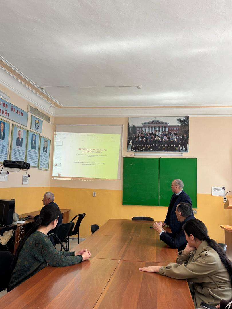 2026- жылдын 12- март күнү саат 13:10до 209 лекциялык каанада кафедранын кезектеги илимий семинары болуп өттү. Семинарда ЭТФ кафедрасынын профессору, ф.-м.и.д., профессор Ысламидин Ташполотов " Жогорку өткөрүмдүүлүк: кечээ, бүгүн жана эртен" -деген темада болуп өттү. Энергияны үнөмдөөнү жана каршылыксыз өткөргүчтү табуу 100 жылдан бери чечилбей келе жаткан маселе. Семинарга ЭТФ кафедрасынын жамааты, магистранттар, PhD - докторанттар жана жогорку курстун студенттери активдүү катышты. Суроо - жооп менен катар, талкуудагы болду.