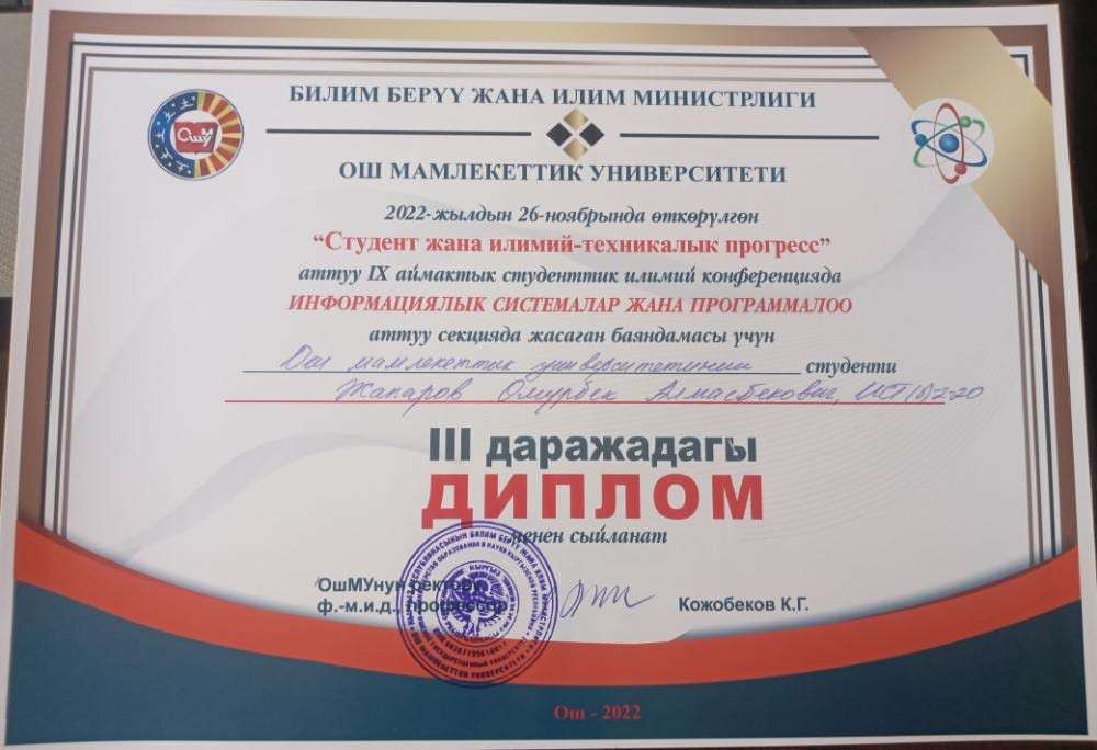 2023-жылдын 17-апрель күнү МИТ факультетинин КРдин илимине эмгек сиңирген ишмер, КР УИАнын мүчө-корреспонденти, ф.-м.и.д., профессор, Ардактуу академик Келдибай Алымкуловго арналган “Математиканын, информациялык технологиялардын учурдагы маселелери жана алардын колдонулуштары” аттуу илим жумалыгынын ачылыш салтанаты болуп, окутуучулар жана аспиранттар пленардык баяндамалар жасашты.