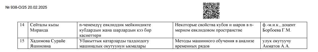 • Темы магистерских диссертации